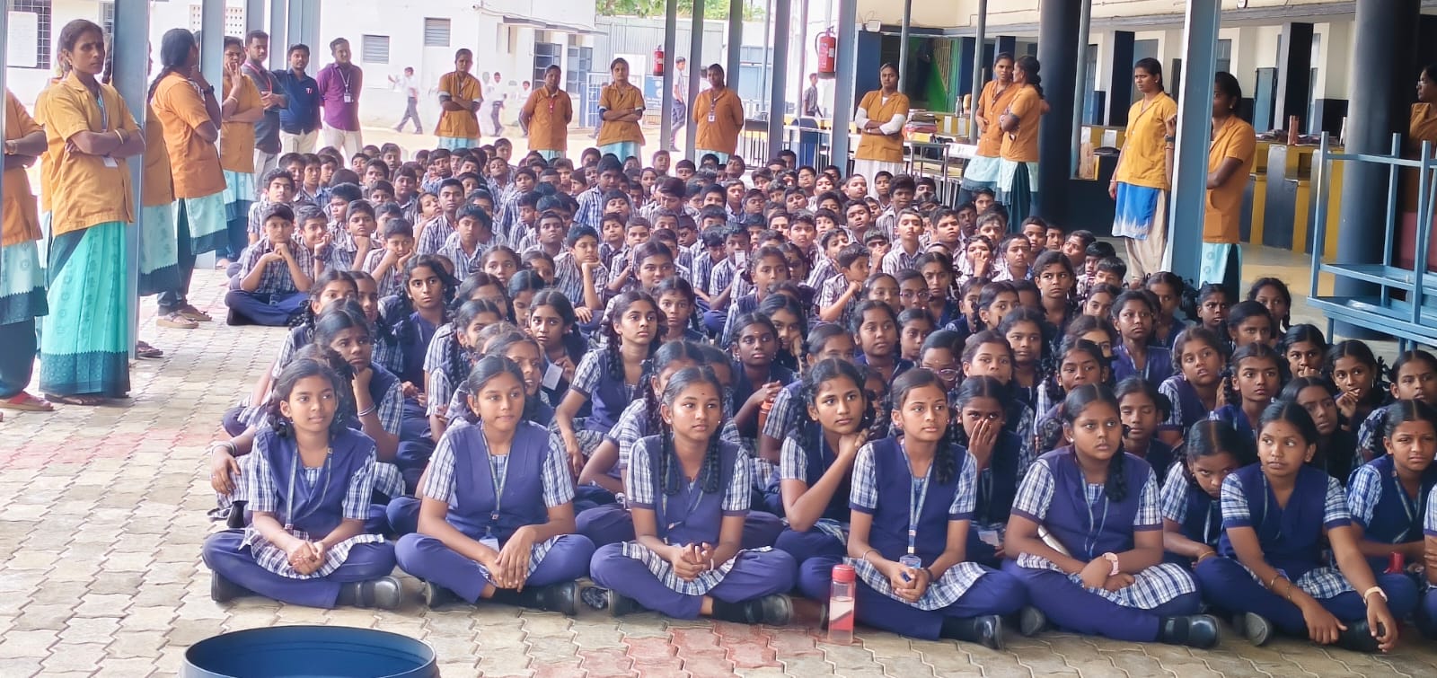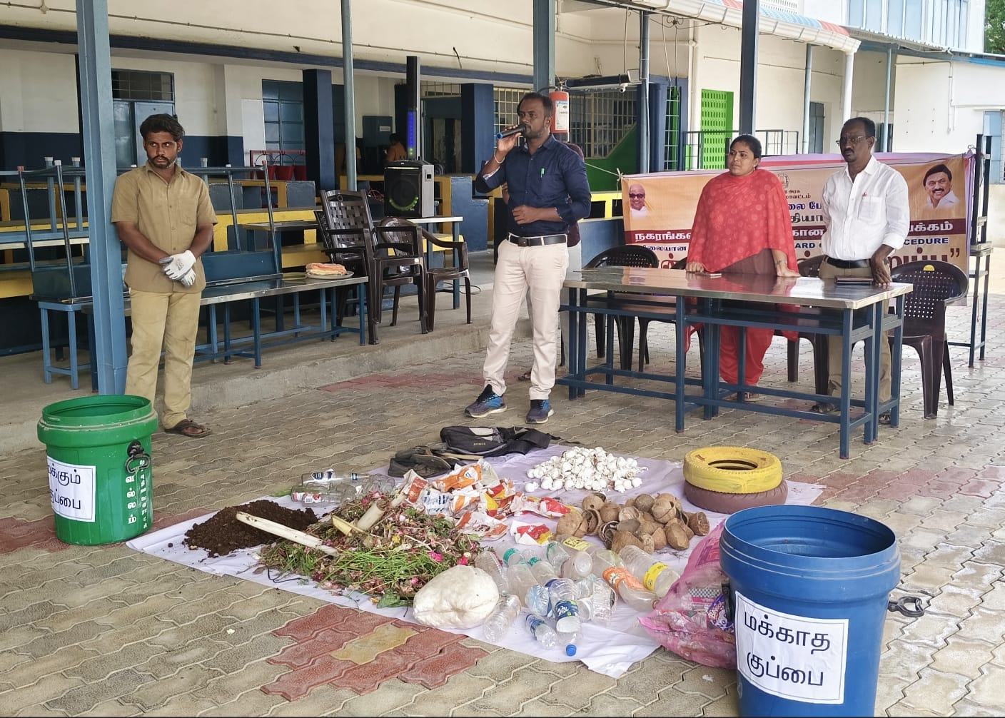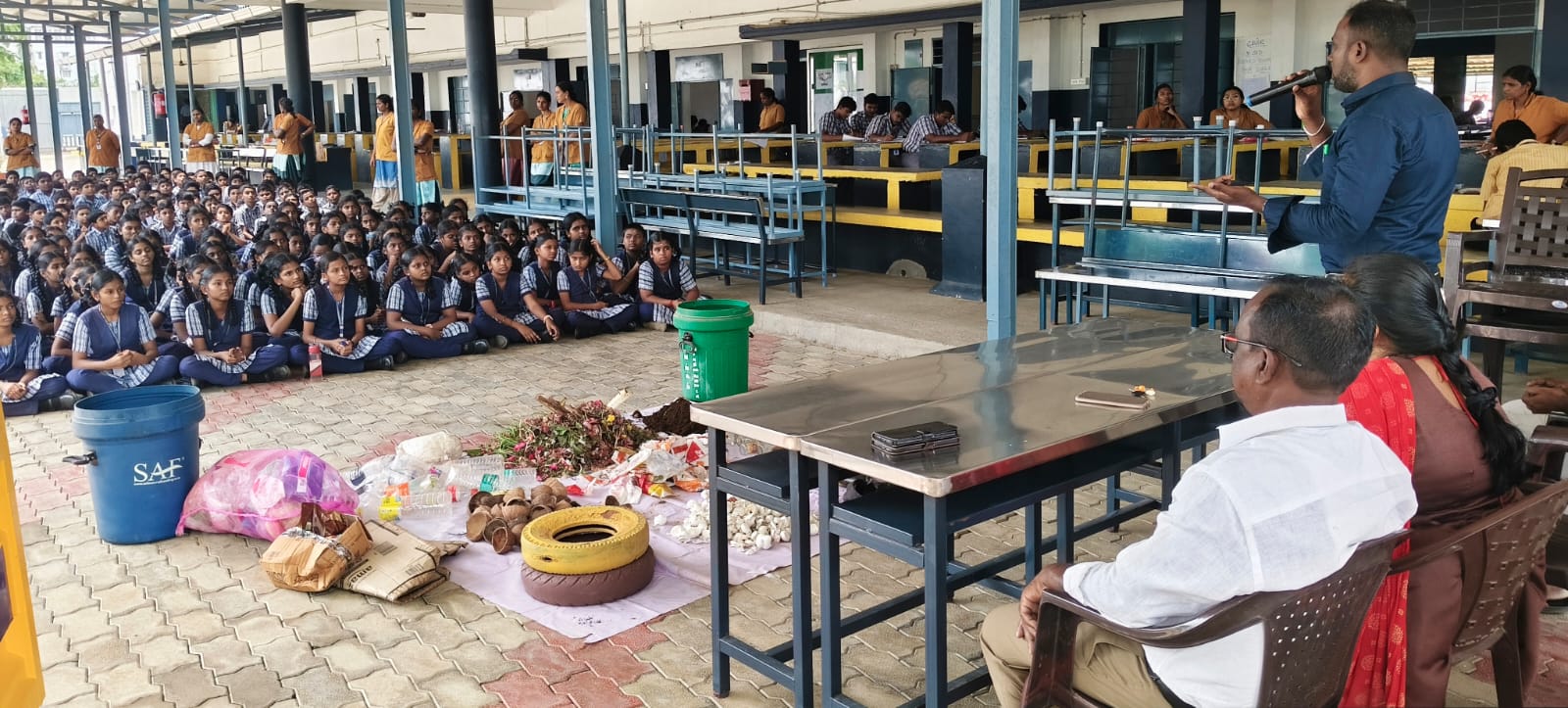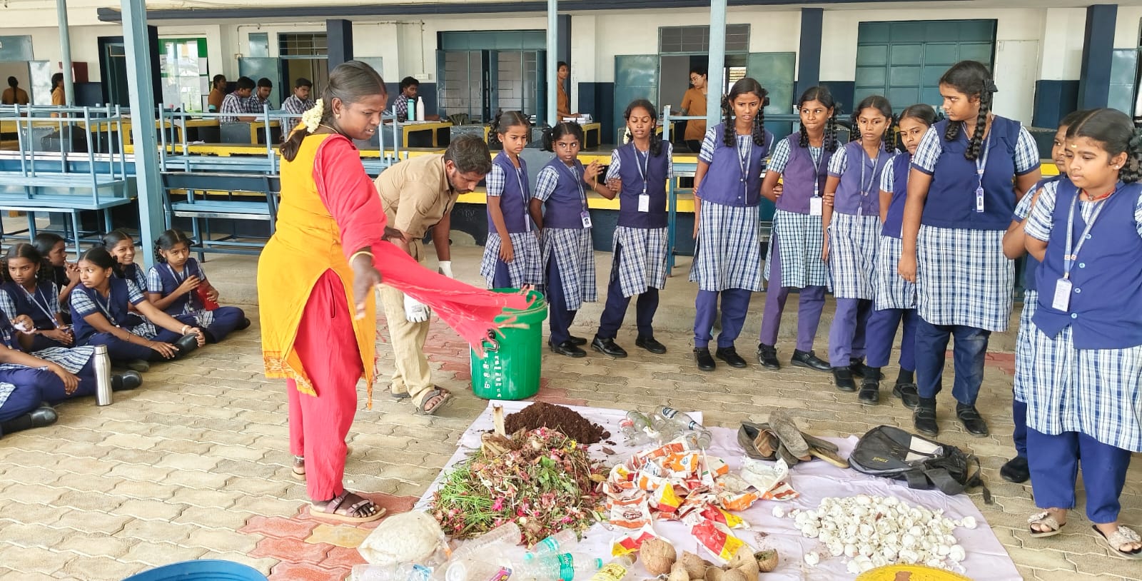 23.9. 2025 அன்று நம் பள்ளியில் வல்லம் பேரூராட்சியில் இருந்து சுகாதார பாதுகாப்பு முதன்மை அதிகாரி மற்றும் அலுவலர்கள் பள்ளிக்கு வருகை புரிந்து “தூய்மையே சேவை” என்ற தலைப்பில் மக்கும் குப்பை மற்றும் மக்காத குப்பைகளின் நன்மை மற்றும் தீமைகளை பற்றி மாணவர்களுக்கு விழிப்புணர்வு அளித்தனர்