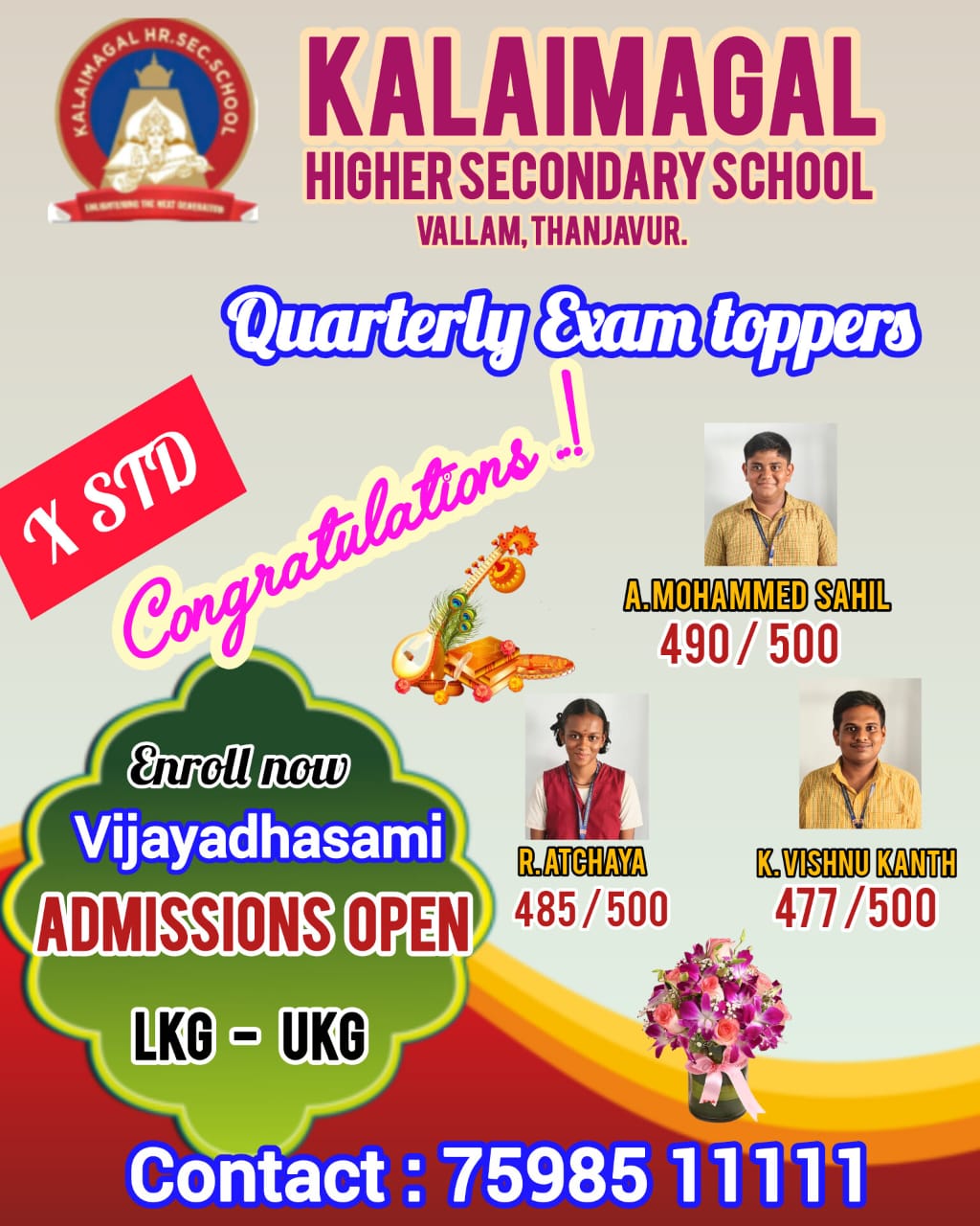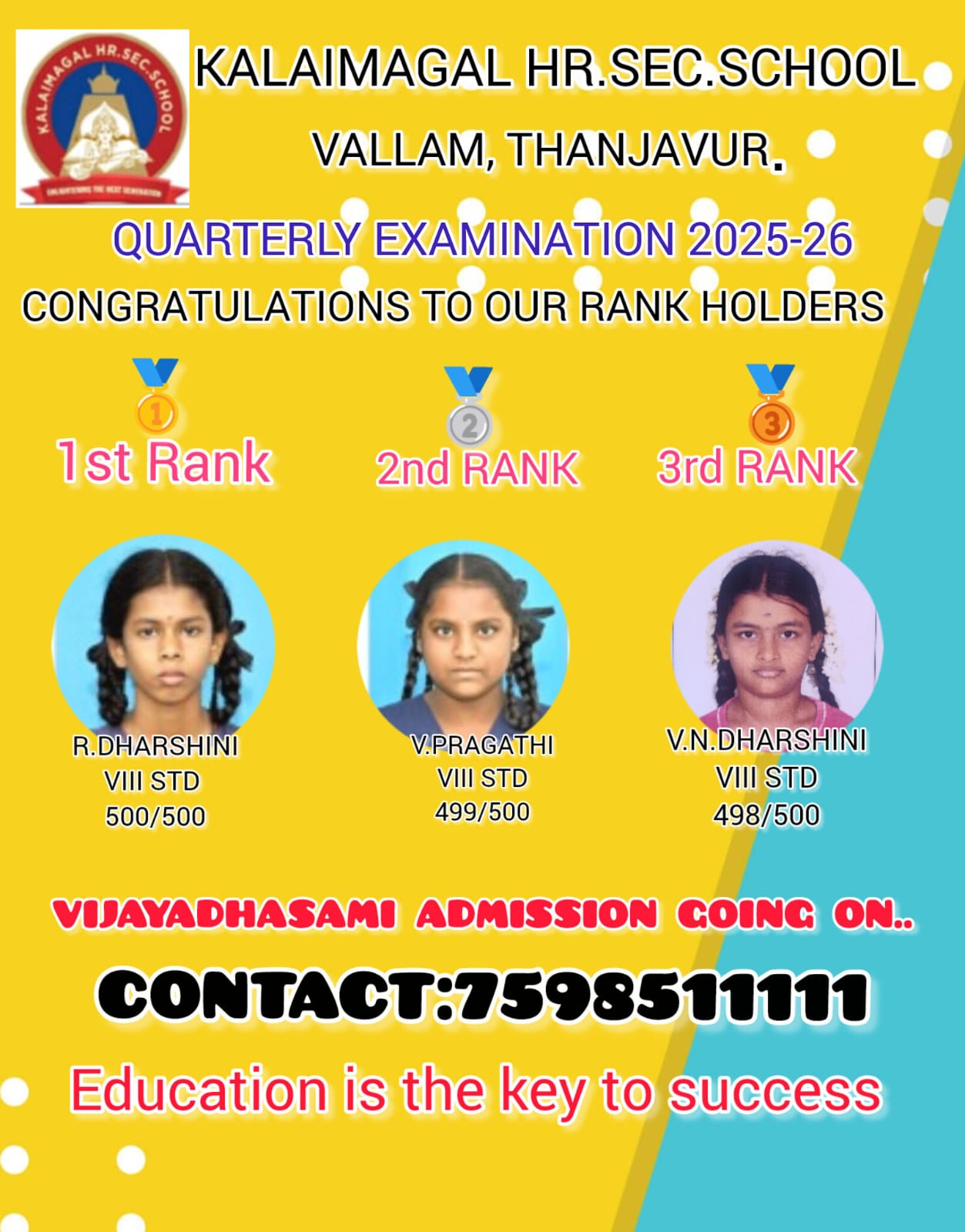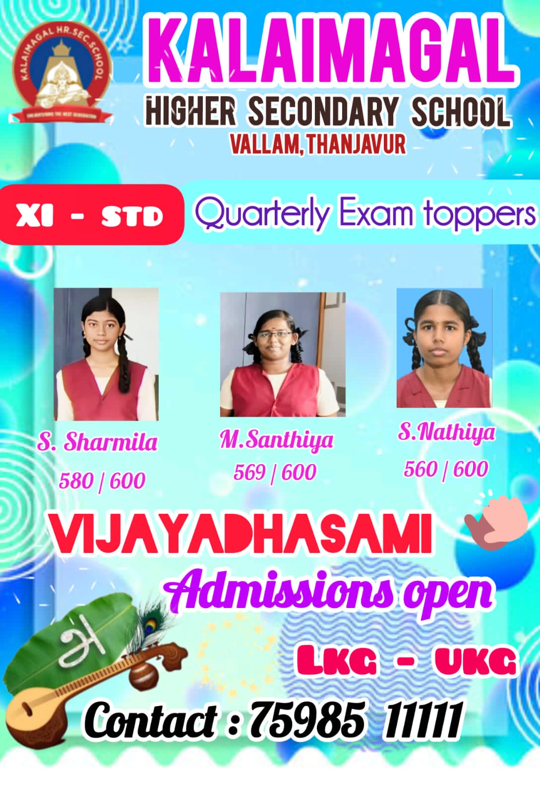 To prove that above quoted lines our kalaimagal students succeeded in the quarterly examination and achieved a centum in various subjects.